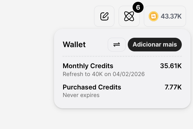 The Credit Wallet, together with the Execution History, gives full transparency about how the AI is being used in your workspace.