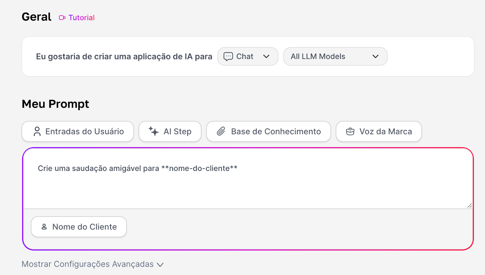 And the instruction would be: "Create a friendly greeting for **nome-do-cliente**"