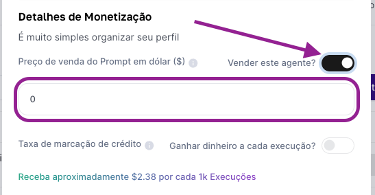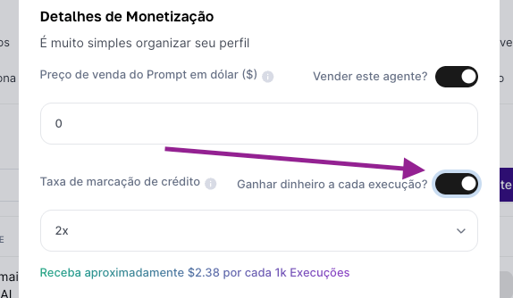 On the same Monetization Settings screen for the agent, turn on the Markup option to earn credits on every execution.