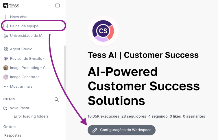 The setup process happens in the Team Dashboard tab in the left side menu, under "Workspace Settings":
