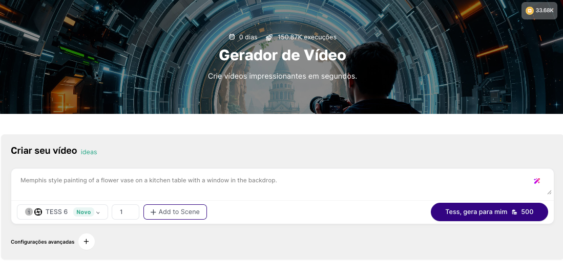 In this article, we’ll focus on video generation using the Generator, whose interface works like your “production studio” inside Tess AI. It uses AI models capable of interpreting your instructions and creating moving scenes — usually in the form of short clips, ready for you to download and use.