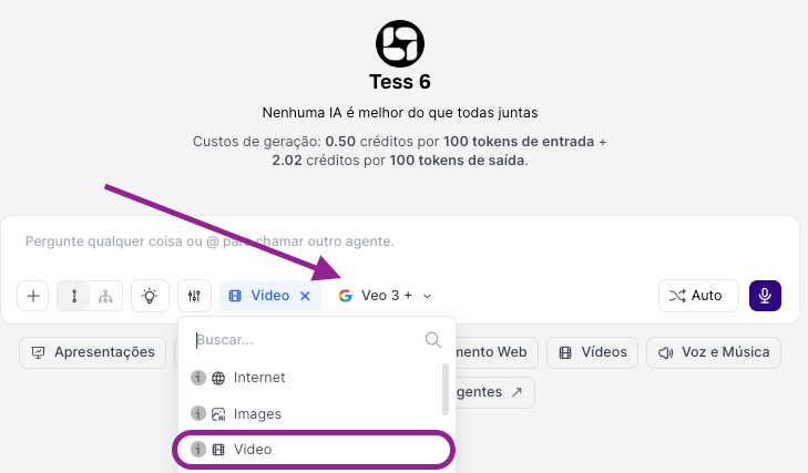 Where to generate videos in Tess AI?