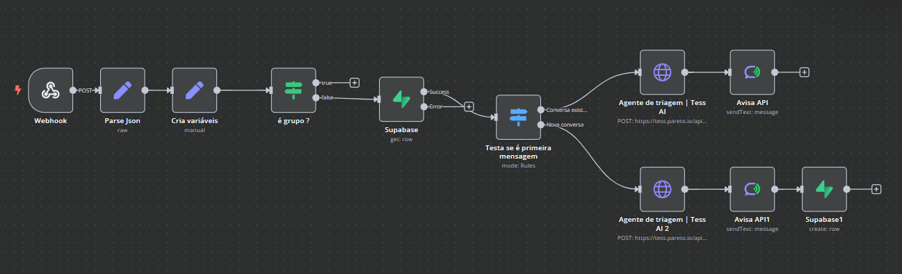 "Agente Tess AI": O "cérebro" do chatbot. Envia a mensagem do usuário para a Tess AI e recebe a resposta.